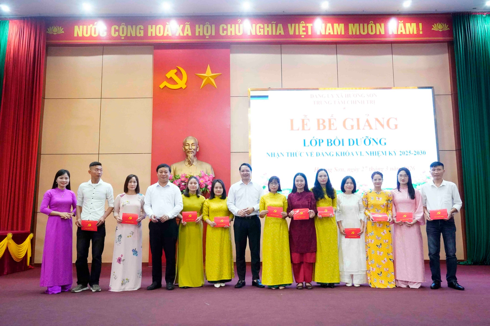 Các đồng chí trong Thường trực Đảng ủy xã Hương Sơn dự khai mạc bầu cử đại biểu Quốc hội khóa XVI và đại biểu HĐND các cấp nhiệm kỳ 2026-2031