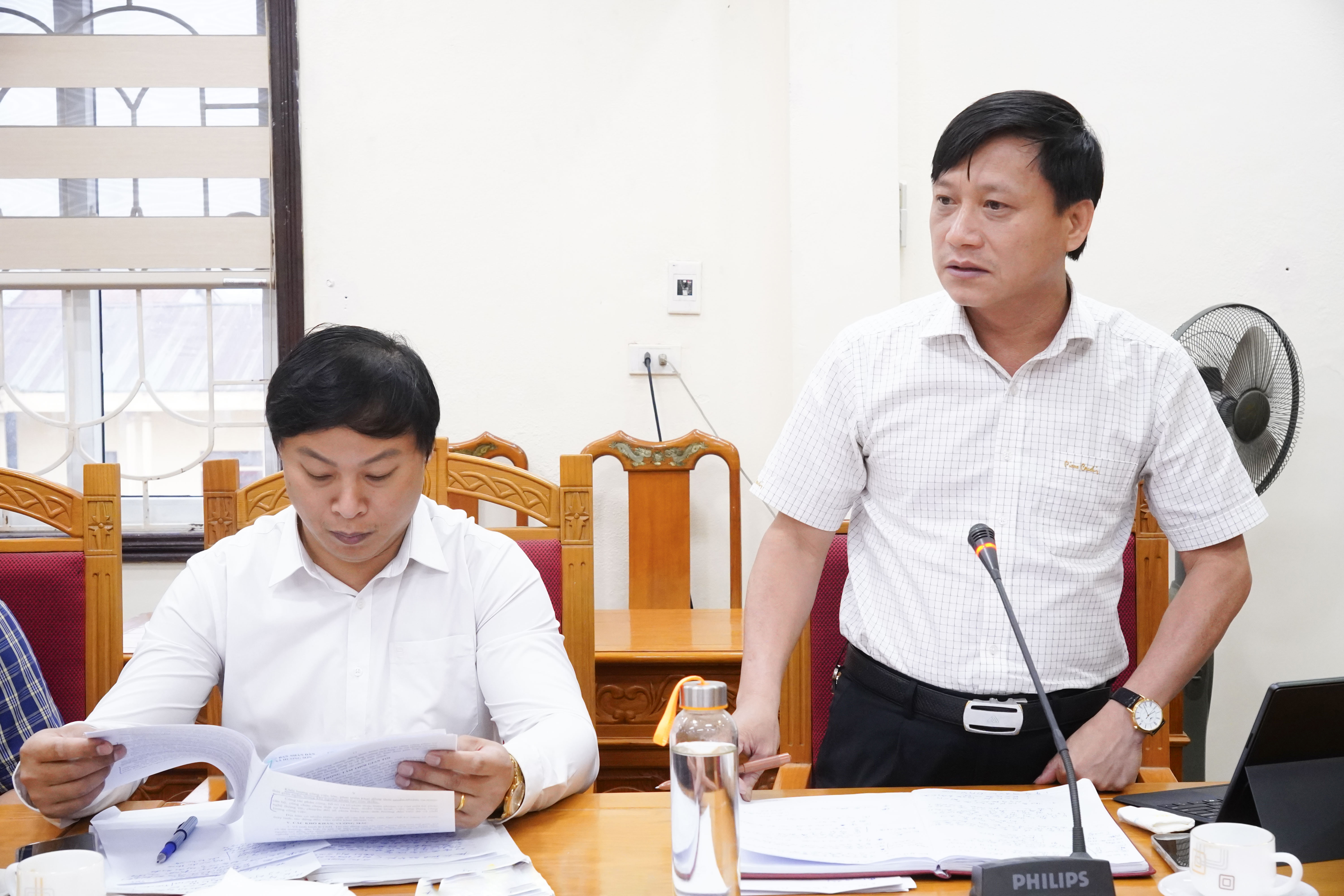 Đồng chí Hồ Thái Sơn - Phó Bí thư Đảng ủy, Chủ tịch UBND xã phát biểu tại cuộc họp