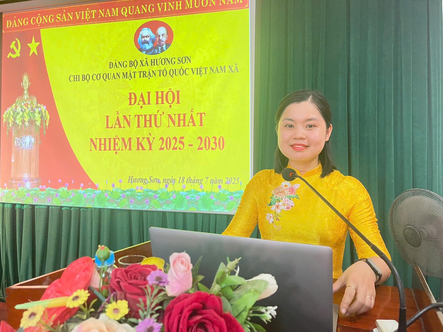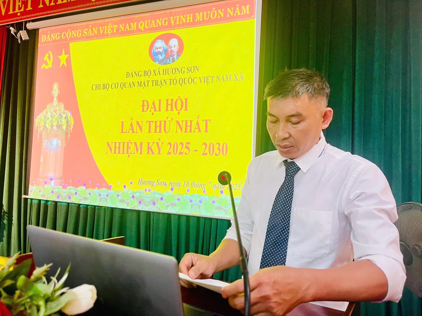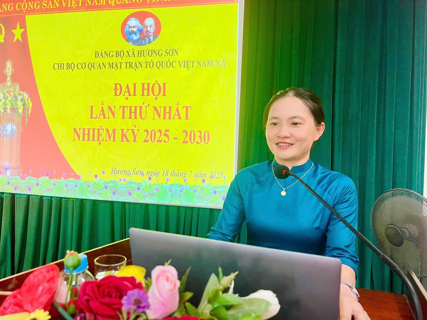 Đại hội tin tưởng rằng, với sự đoàn kết, đồng lòng của toàn thể đảng viên, Chi bộ cơ quan Mặt trận Tổ quốc Việt Nam xã Hương Sơn sẽ tiếp tục phát huy vai trò nòng cốt, tiên phong, góp phần thực hiện thắng lợi nhiệm vụ chính trị của địa phương, xây dựng xã Hương Sơn ngày càng phát triển bền vững!