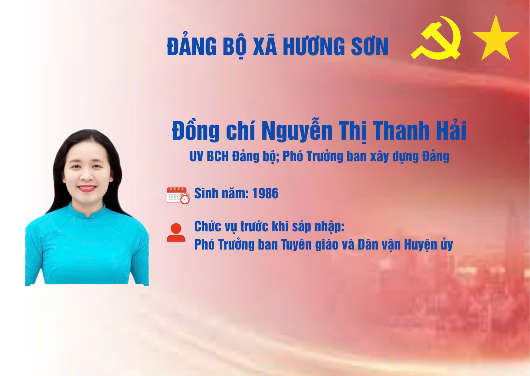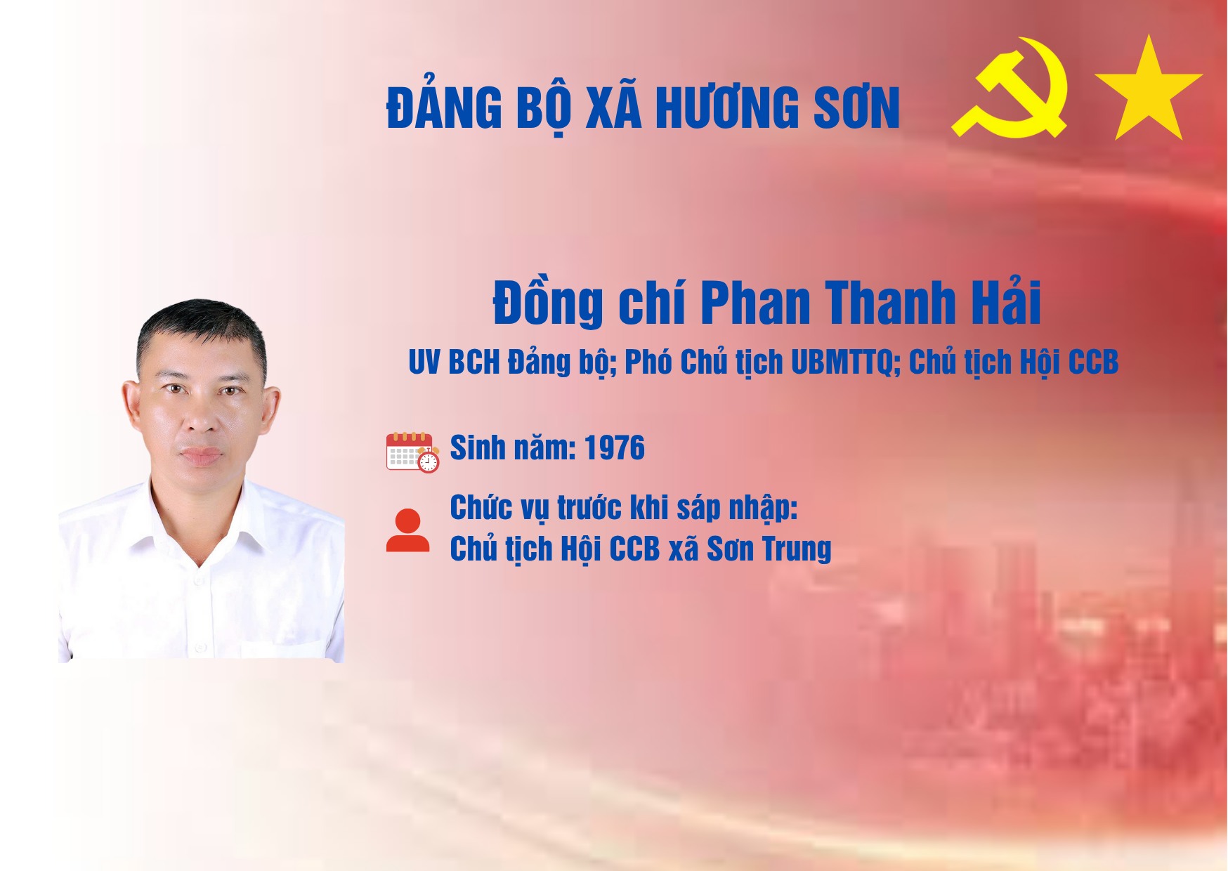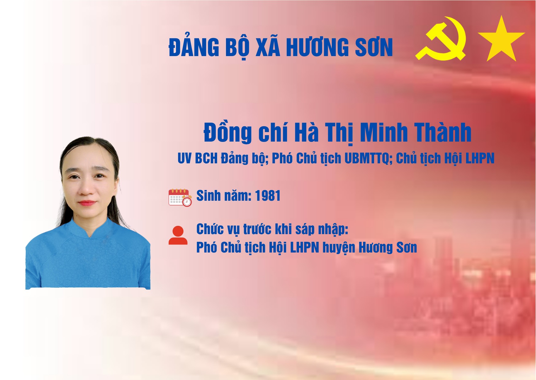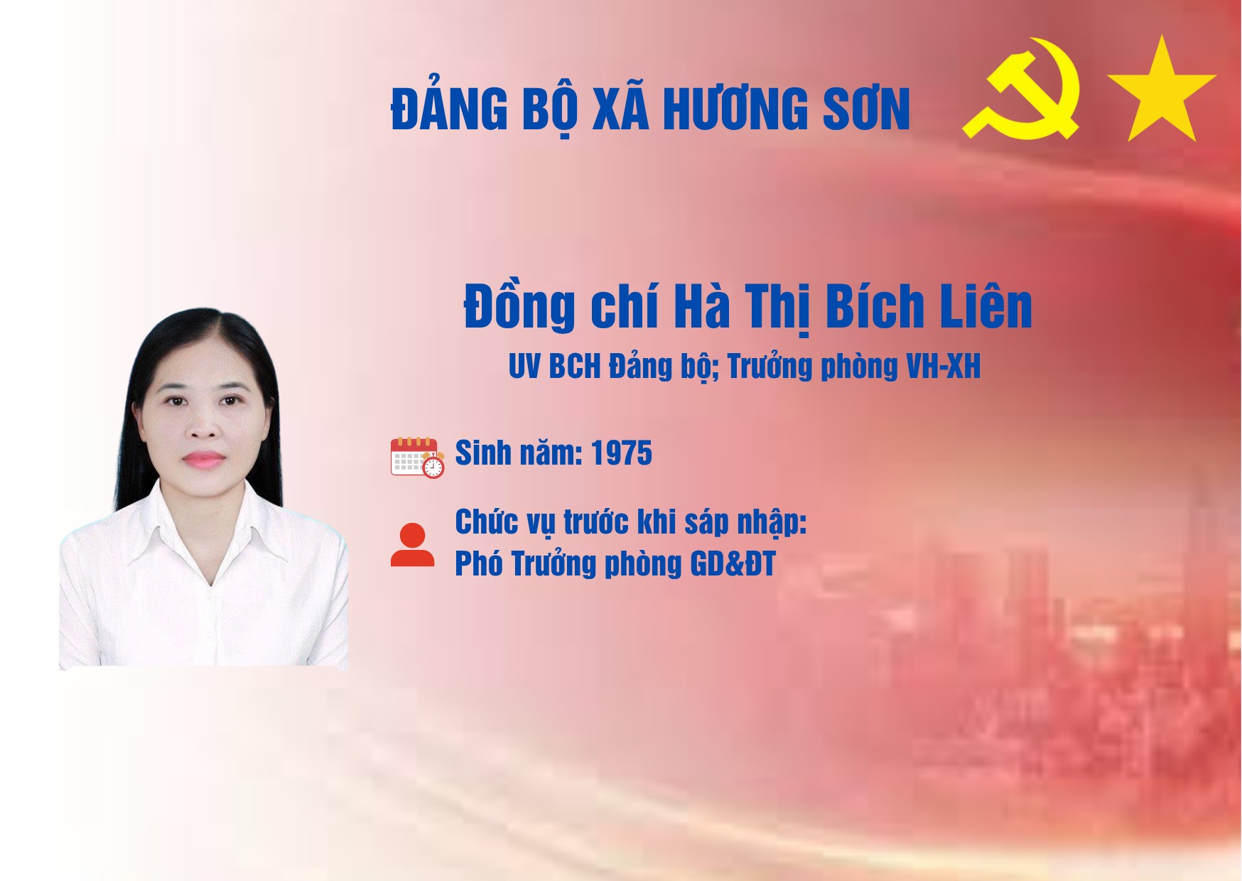 DANH SÁCH CÁC ĐỒNG CHÍ TRONG THƯỜNG TRỰC, BAN THƯỜNG VỤ, BAN CHẤP HÀNH ĐẢNG BỘ XÃ HƯƠNG SƠNẨn danh19/07/2025A -A+Ẩn danh19/07/2025A -A+DANH SÁCH CÁC ĐỒNG CHÍ TRONG THƯỜNG TRỰC, BAN THƯỜNG VỤ, BAN CHẤP HÀNH ĐẢNG BỘ XÃ HƯƠNG SƠN