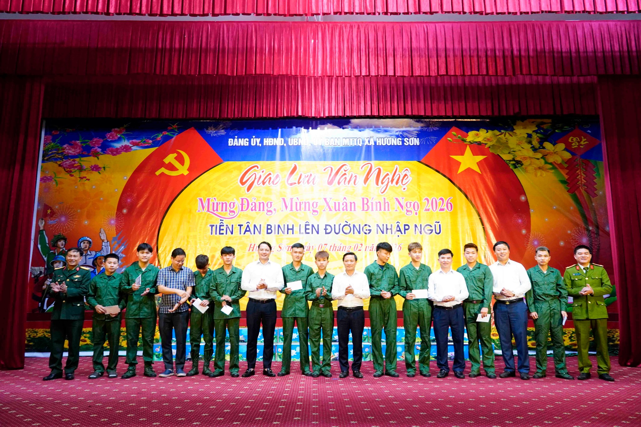 Cũng tại chương trình UBND xã Hương Sơn đã trao 40 phần quà cho 40 thanh niên chuẩn bị lên đường nhập ngũ năm 2026 (trong đó có 5 thanh niên thuộc diện dự bị).