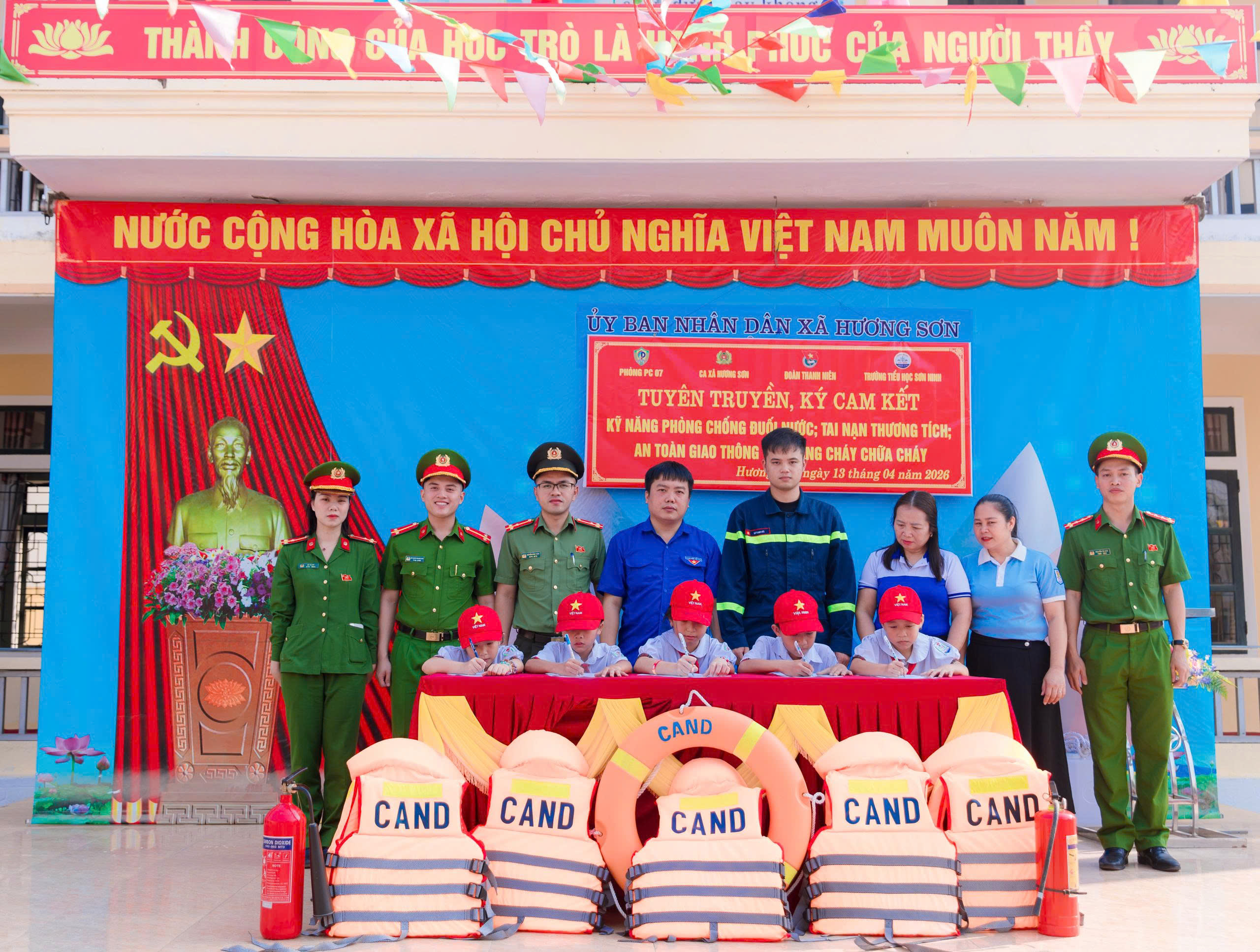 Cũng trong dịp này, nhà trường đã tổ chức cho học sinh ký cam kết thực hiện nghiêm các quy định về phòng chống đuối nước, tai nạn thương tích, an toàn giao thông và phòng cháy, chữa cháy.