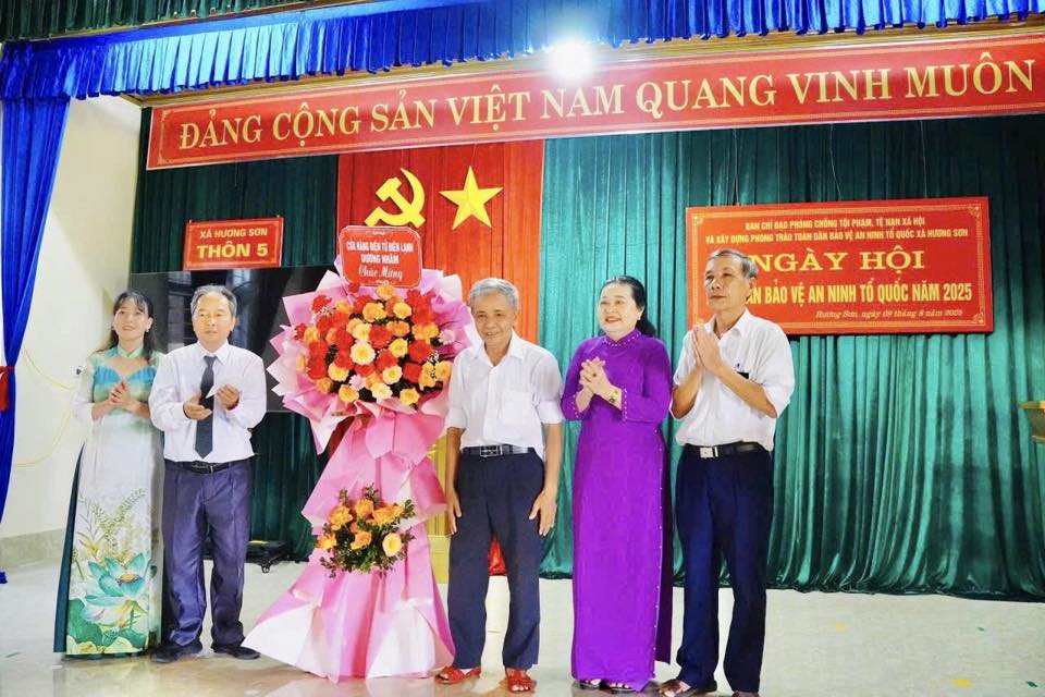 Phát biểu chúc mừng ngày hội, đồng chí Trần Tuấn Khoa – Phó Chủ tịch UBND xã Hương Sơn ghi nhận những kết quả mà thôn 5 đã đạt được, nhất là về phong trào “Toàn dân bảo vệ ANTQ”. Đồng thời đề nghị Nhân dân thôn 5 tiếp tục quan tâm thực hiện hiệu quả phong trào “Toàn dân bảo vệ ANTQ”; tăng cường công tác tuyên truyền, giáo dục chính trị tư tưởng đối với cán bộ, đảng viên và Nhân dân về ý thức sống thượng tôn pháp luật. Nâng cao chất lượng, hiệu quả phong trào toàn dân bảo vệ ANTQ gắn với các phong trào, cuộc vận động khác ở địa phương, góp phần cùng Đảng bộ, chính quyền và Nhân dân xây dựng xã Hương Sơn ngày càng phát triển, văn minh, hiện đại.