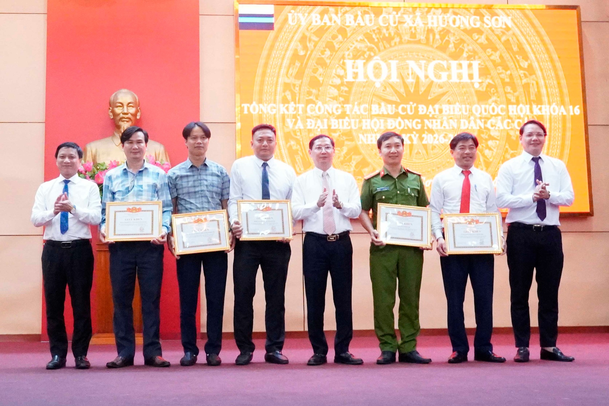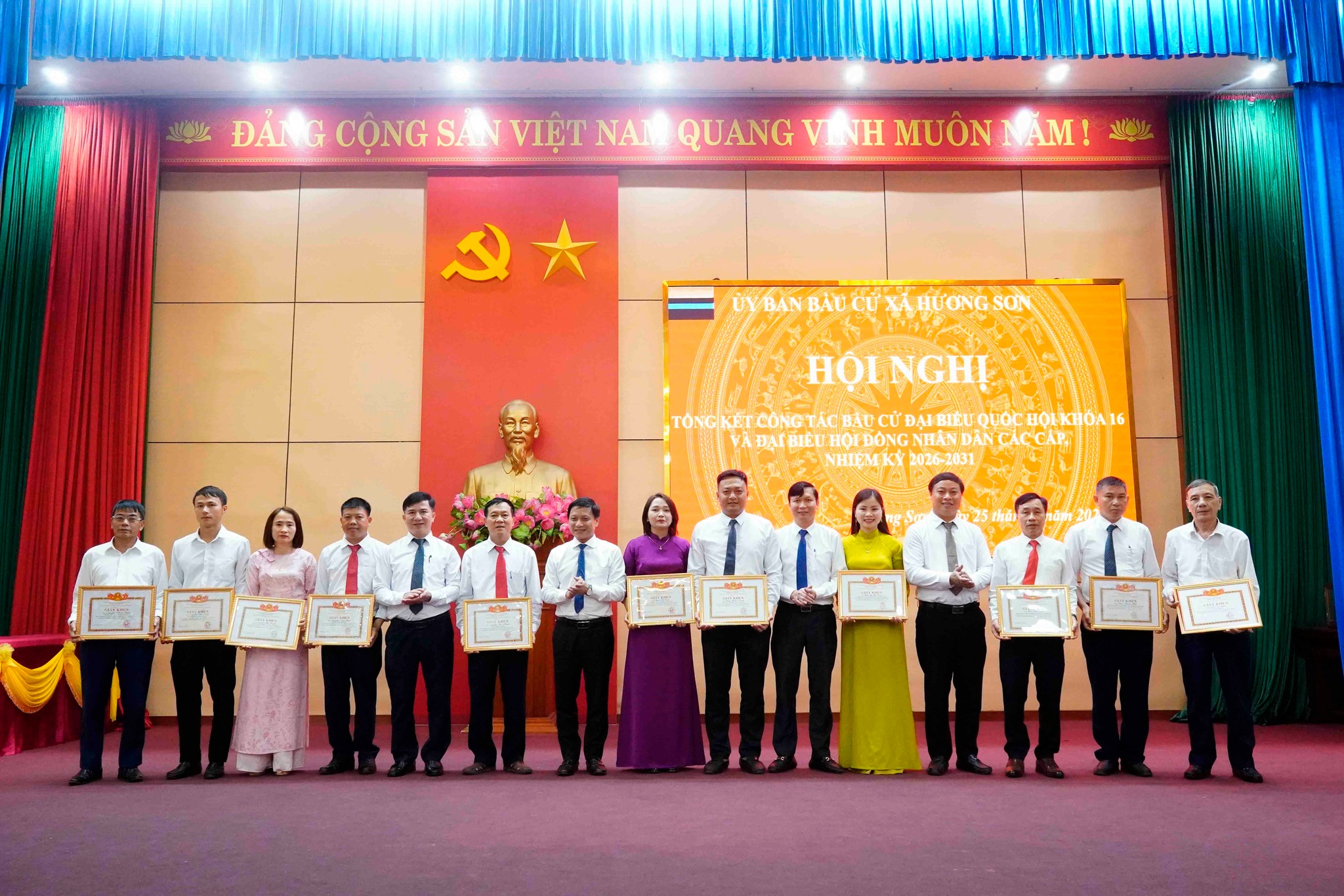 Tại hội nghị tổng kết Chủ tịch UBND xã Hương Sơn đã tặng giấy khen cho 5 tập thể và 36 cá nhân đã có thành tích trong công tác bầu cử đại biểu Quốc hội khóa XVI và đại biểu HĐND các cấp nhiệm kỳ 2026 - 2031.