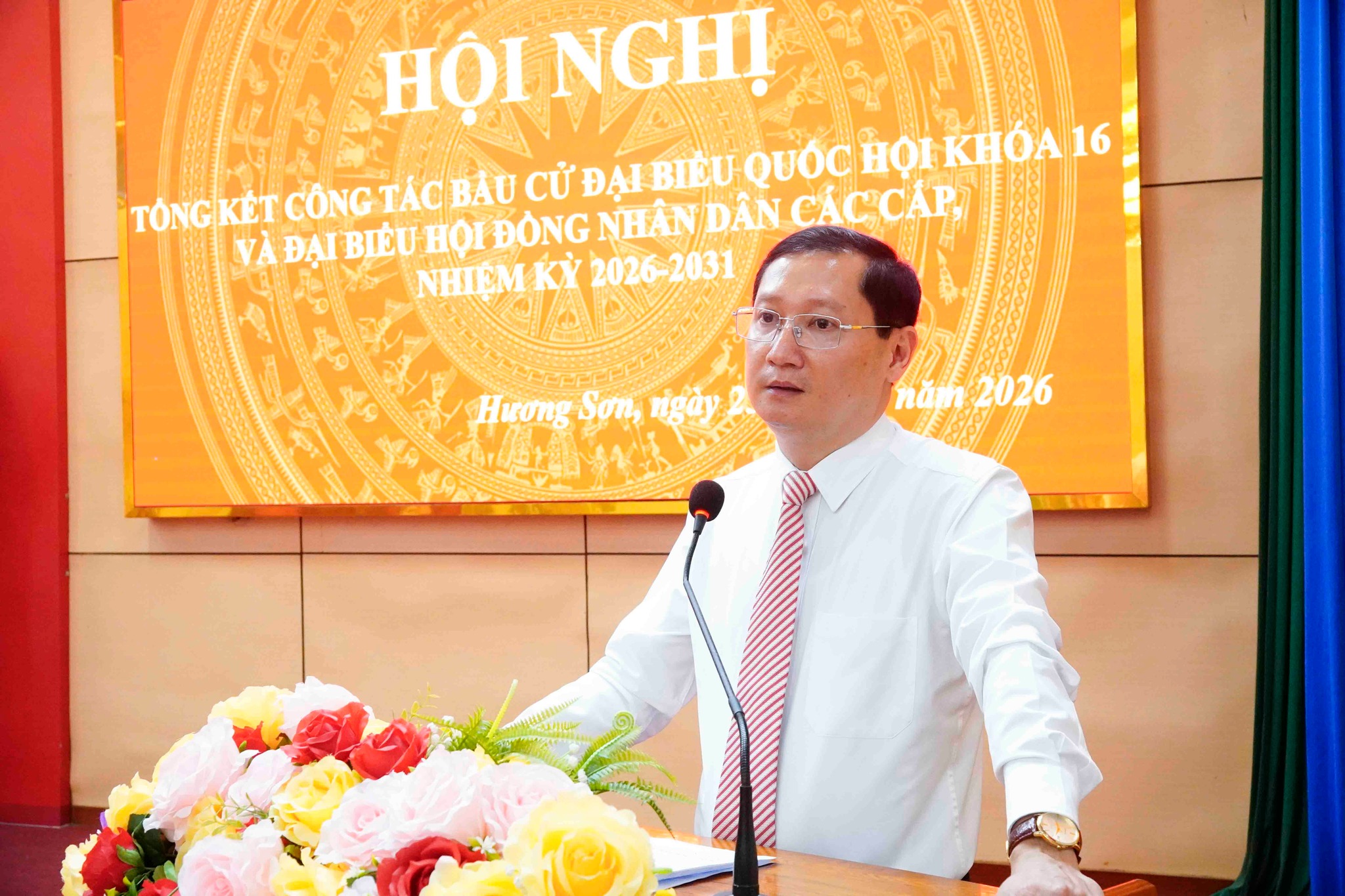 Phát biểu tại hội nghị tổng kết đồng chí Lương Quốc Tuấn – TUV, Bí thư Đảng ủy, Chủ tịch HĐND xã, Chủ tịch UB Bầu cử xã khẳng định cuộc bầu cử đại biểu Quốc hội khóa XVI và đại biểu Hội đồng nhân dân các cấp nhiệm kỳ 2026-2031 trên địa bàn xã Hương Sơn đã diễn ra thành công toàn diện, đúng quy định pháp luật, an toàn, dân chủ và thực sự là ngày hội lớn của toàn dân. Kết quả bầu cử thể hiện rõ tinh thần trách nhiệm, niềm tin và sự đồng thuận cao của cử tri đối với Đảng và Nhà nước.