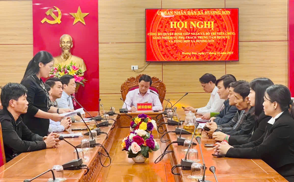 Tại Hội nghị, đại diện Phòng Văn hóa – Xã hội đã công bố quyết định tiếp nhận 5 viên chức về làm việc bố trí làm việc tại Trung tâm dịch vụ tổng hợp xã, đảm nhiệm các nhiệm vụ chuyên môn phù hợp với năng lực và yêu cầu thực tiễn. Giao đồng chí Trần Tuần Khoa - P. Chủ tịch UBND phụ trách Trung tâm.
