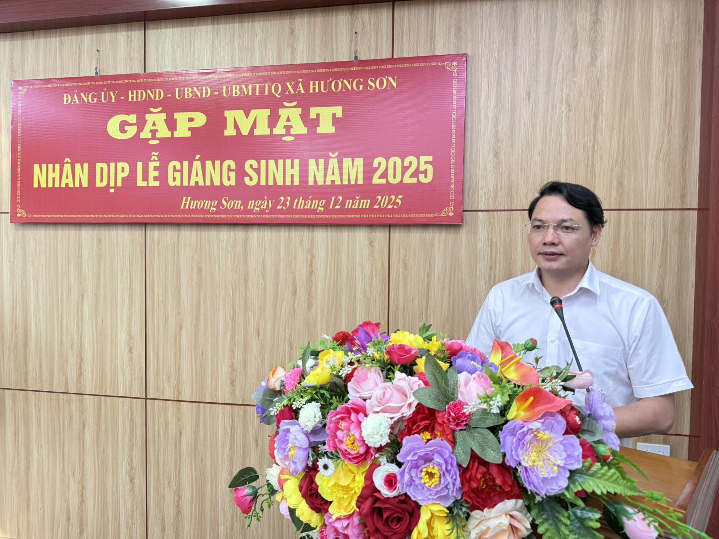 Nhân dịp này, lãnh đạo xã Hương Sơn đã trao tặng hoa, gửi lời chúc mừng tốt đẹp nhất tới các vị chức sắc, chức việc và toàn thể đồng bào Công giáo, chúc một mùa Giáng sinh an lành – hạnh phúc – đoàn kết.