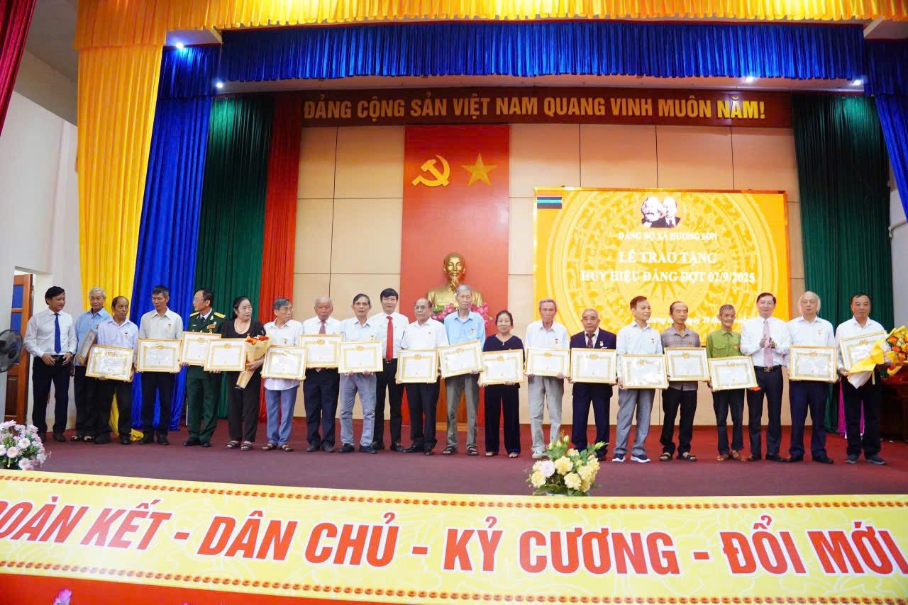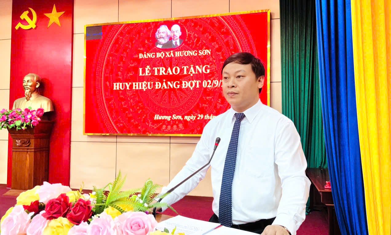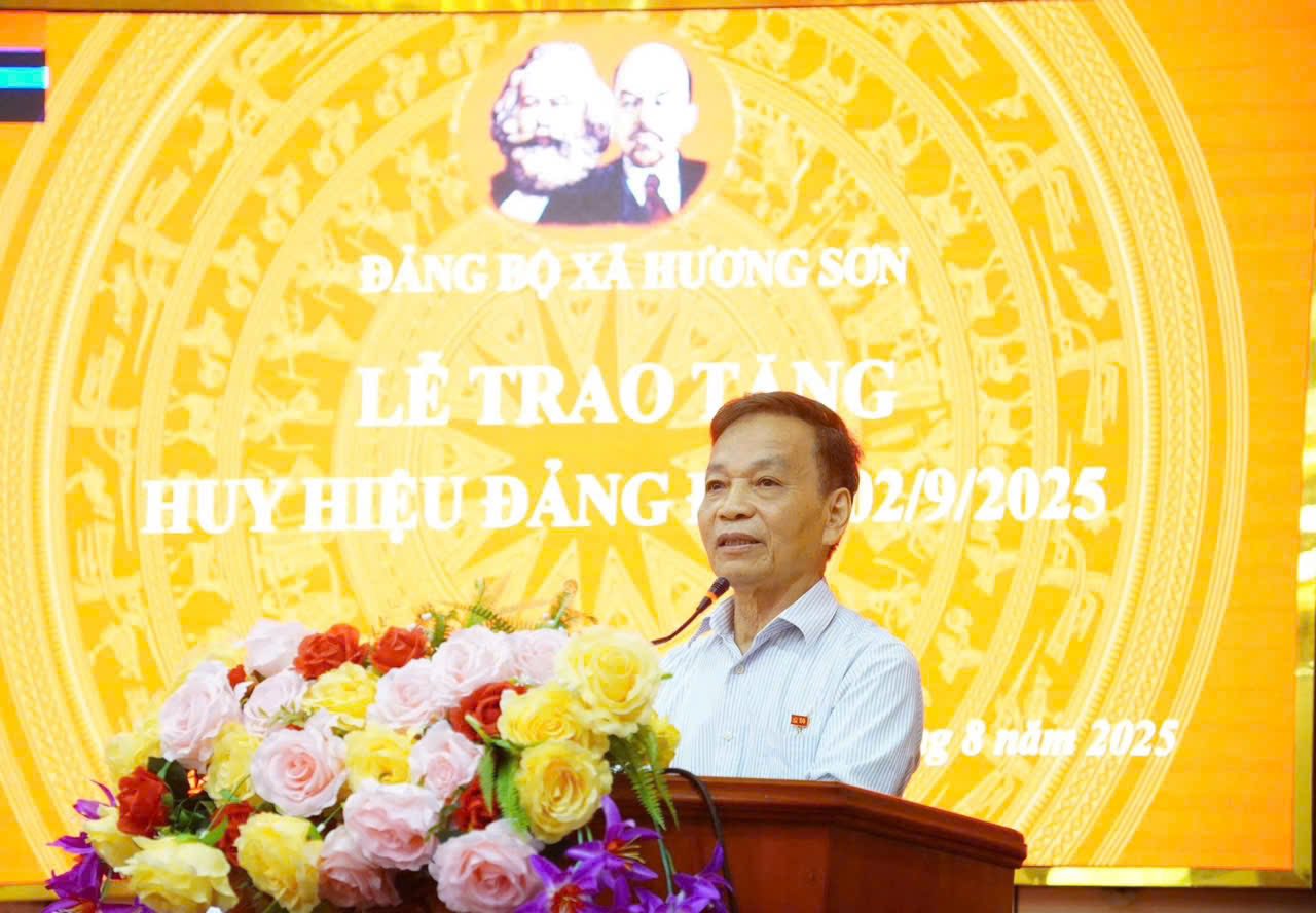 Phát biểu tại buổi lễ, đồng chí Lương Quốc Tuấn – Bí thư Đảng ủy xã Hương Sơn nhấn mạnh: Huy hiệu Đảng là phần thưởng cao quý, thể hiện sự ghi nhận của Đảng đối với quá trình cống hiến không ngừng nghỉ của các đảng viên trong sự nghiệp cách mạng. Những đóng góp đó đã góp phần quan trọng vào sự phát triển của quê hương, đất nước, và là niềm tự hào của toàn Đảng bộ xã.